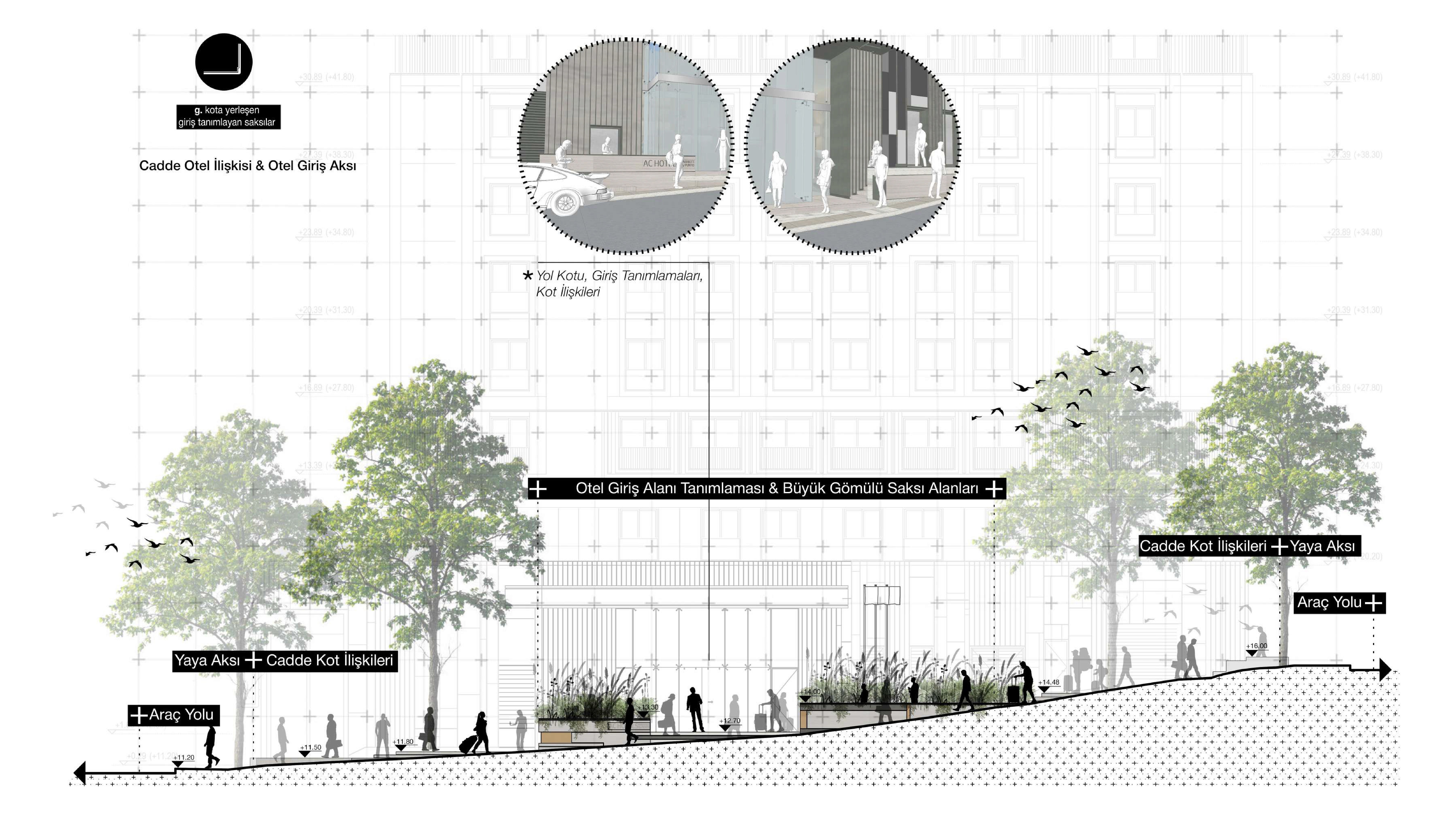The design approach for the AC Marriott by Punto Hotel, which will be located in Istanbul, focuses on its relationship with the street, the creation of an inner courtyard as a breathing space, the design of terrace connection transitions, and the impact of the hotel's identity on the landscape texture. A modular design concept has been adopted, aiming to serve various functions.