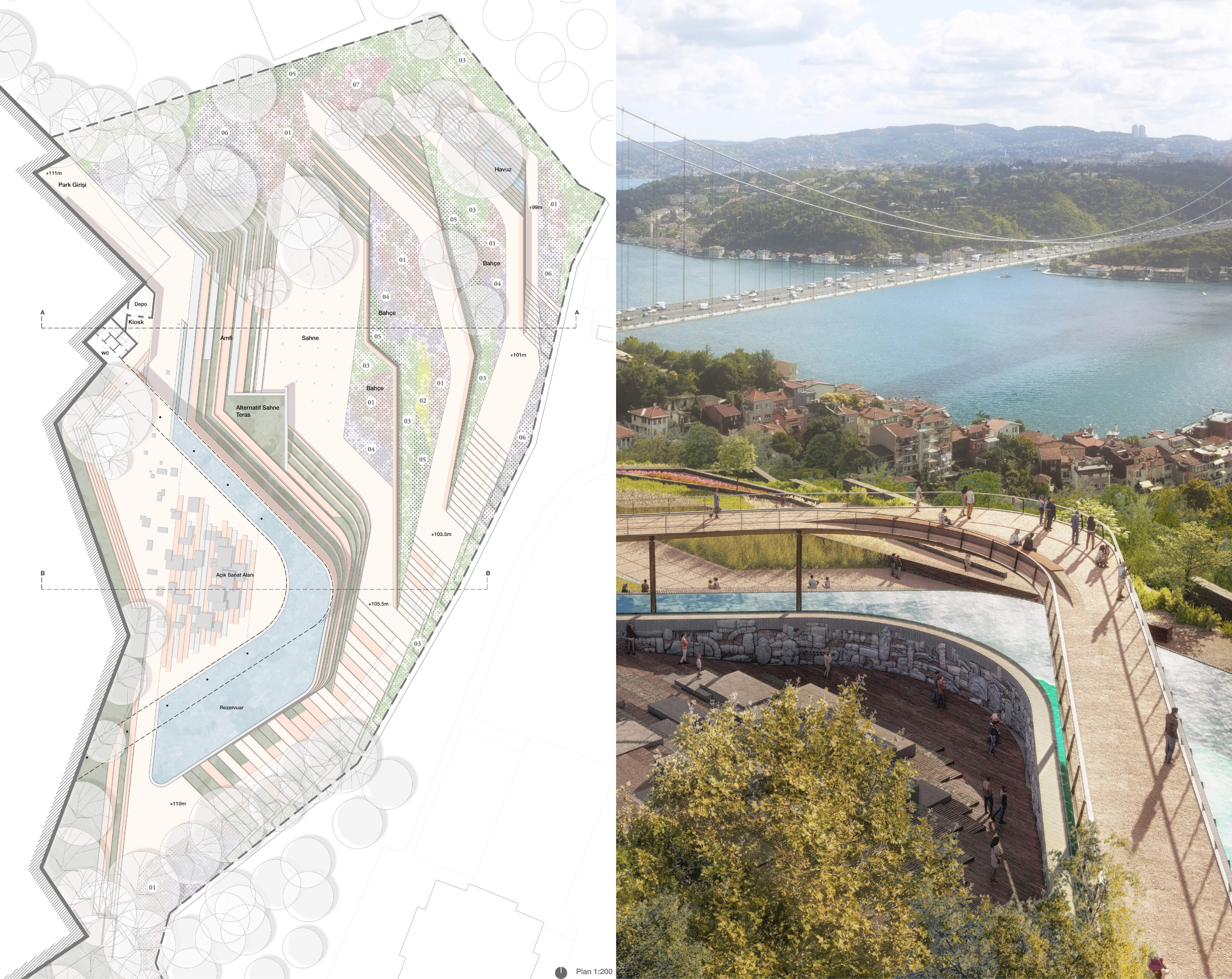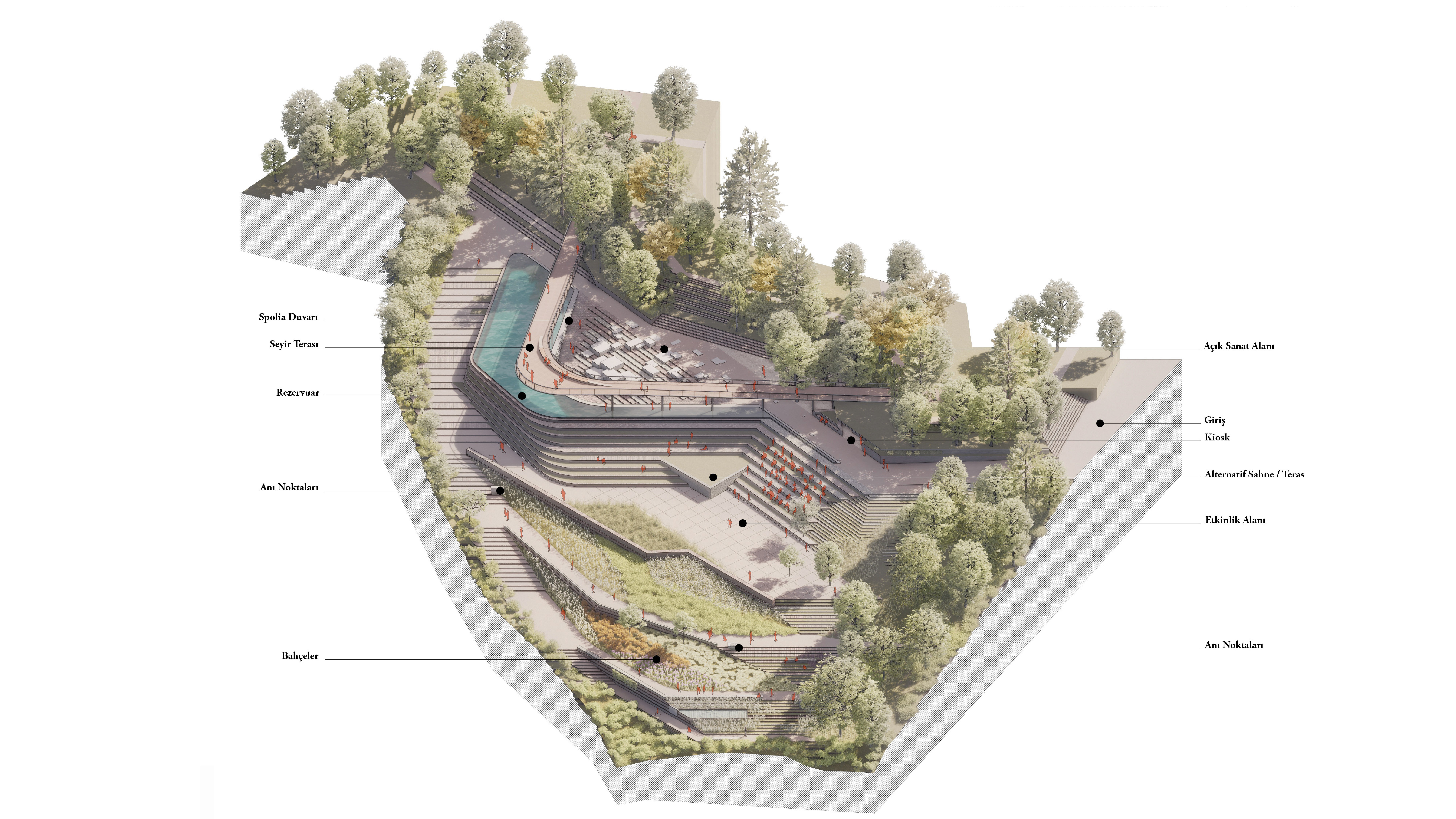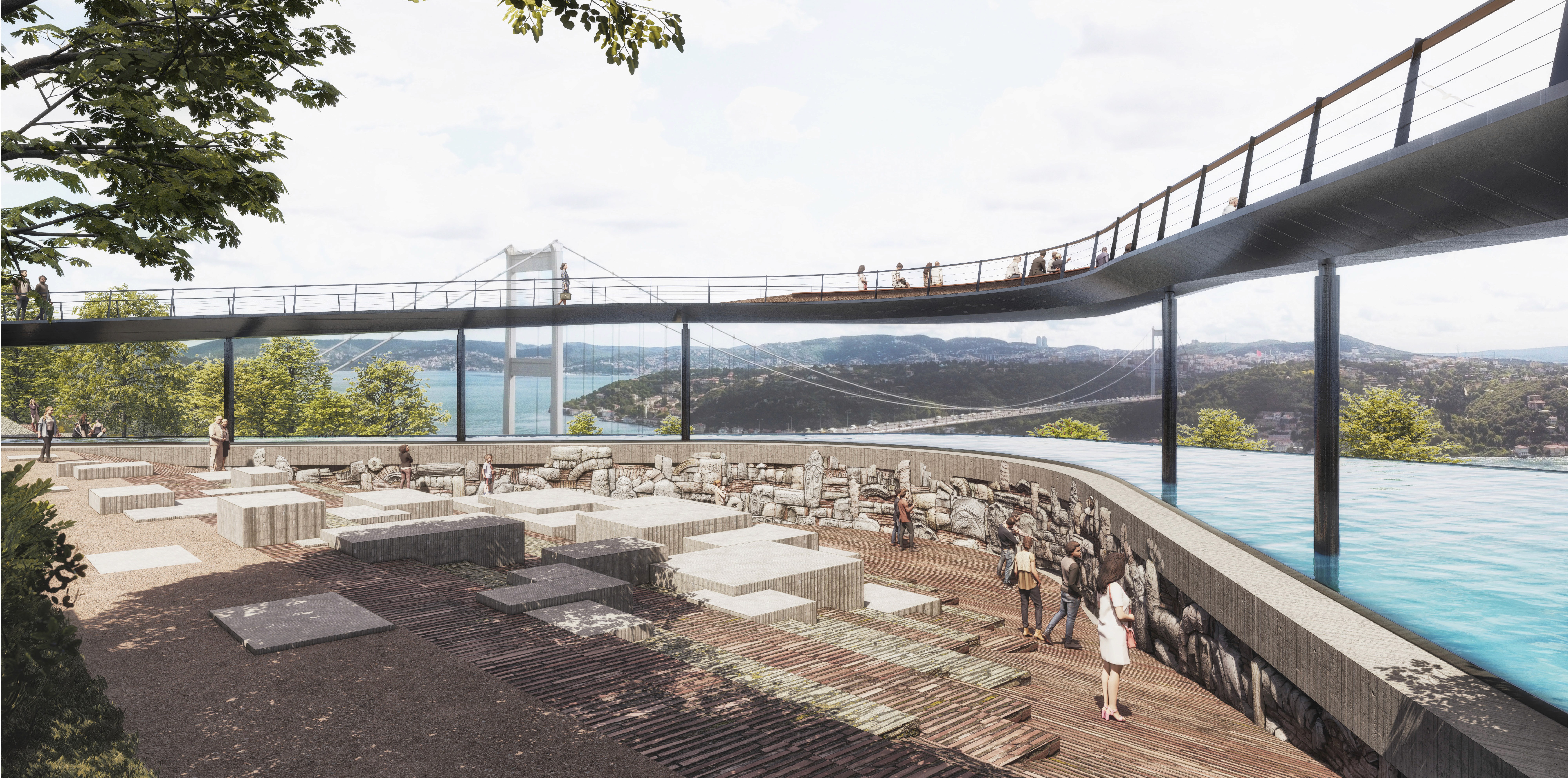 Proje alanının tarihi önemini vurgulamak adına kültürel mirası sembolize edecek “Spolia Duvarı“ tasarlanmıştır. Rumelihisarı duvarlarının da bulunduğu tepede zaman içinde yıkılmış manastır veya sütunların kalıntılarından toplanan spolia’lar Anadolu’nun çeşitli yerlerinden getirilen taşlar ve tuğlalar ile örülmesi önerilmiştir.