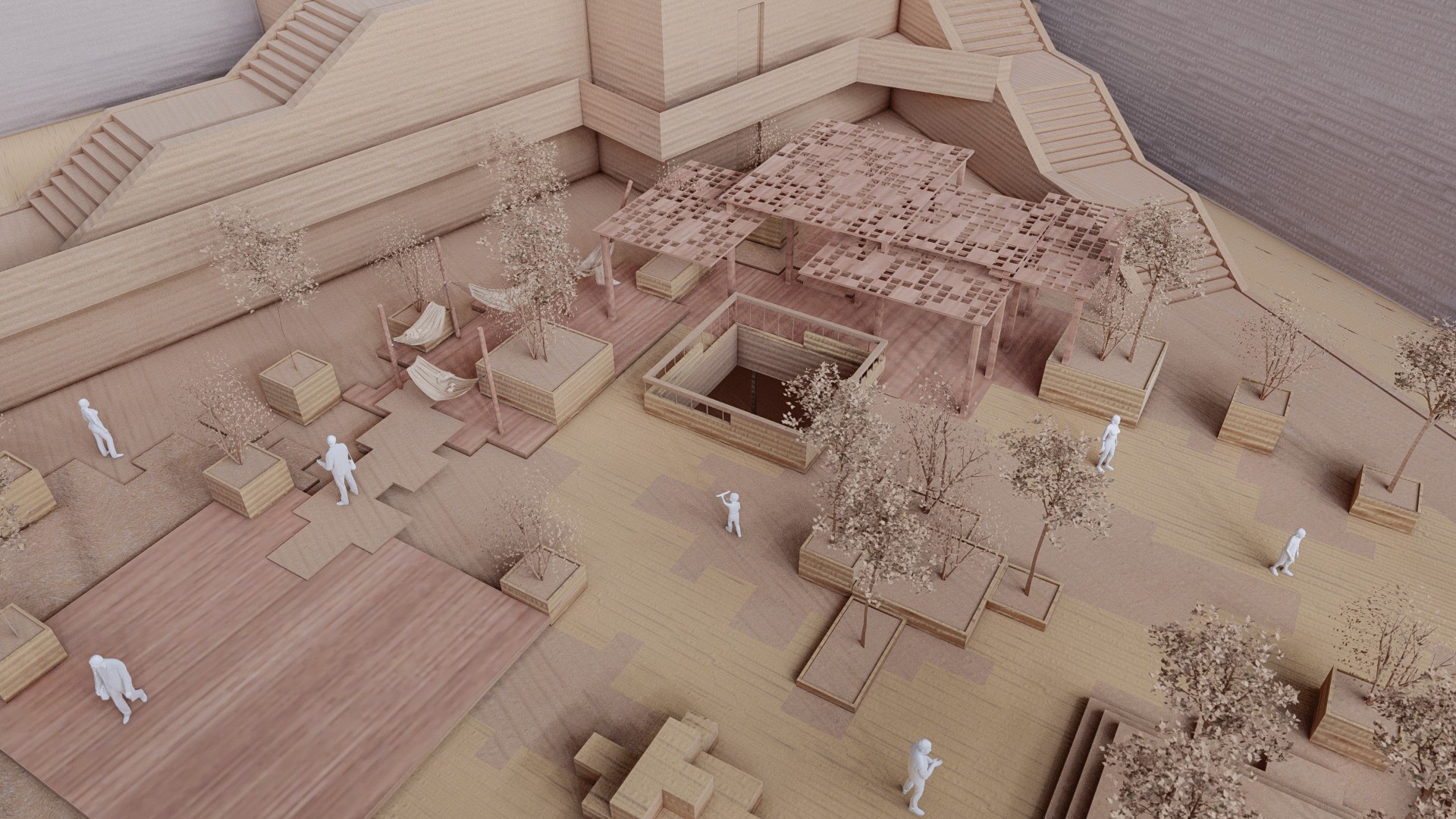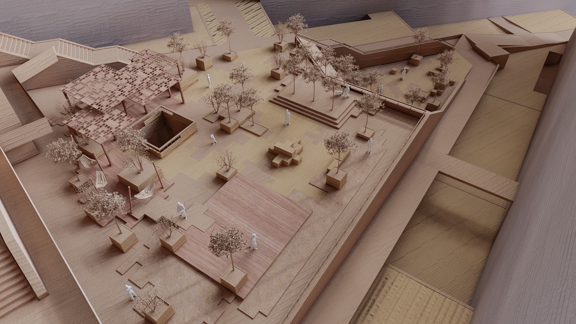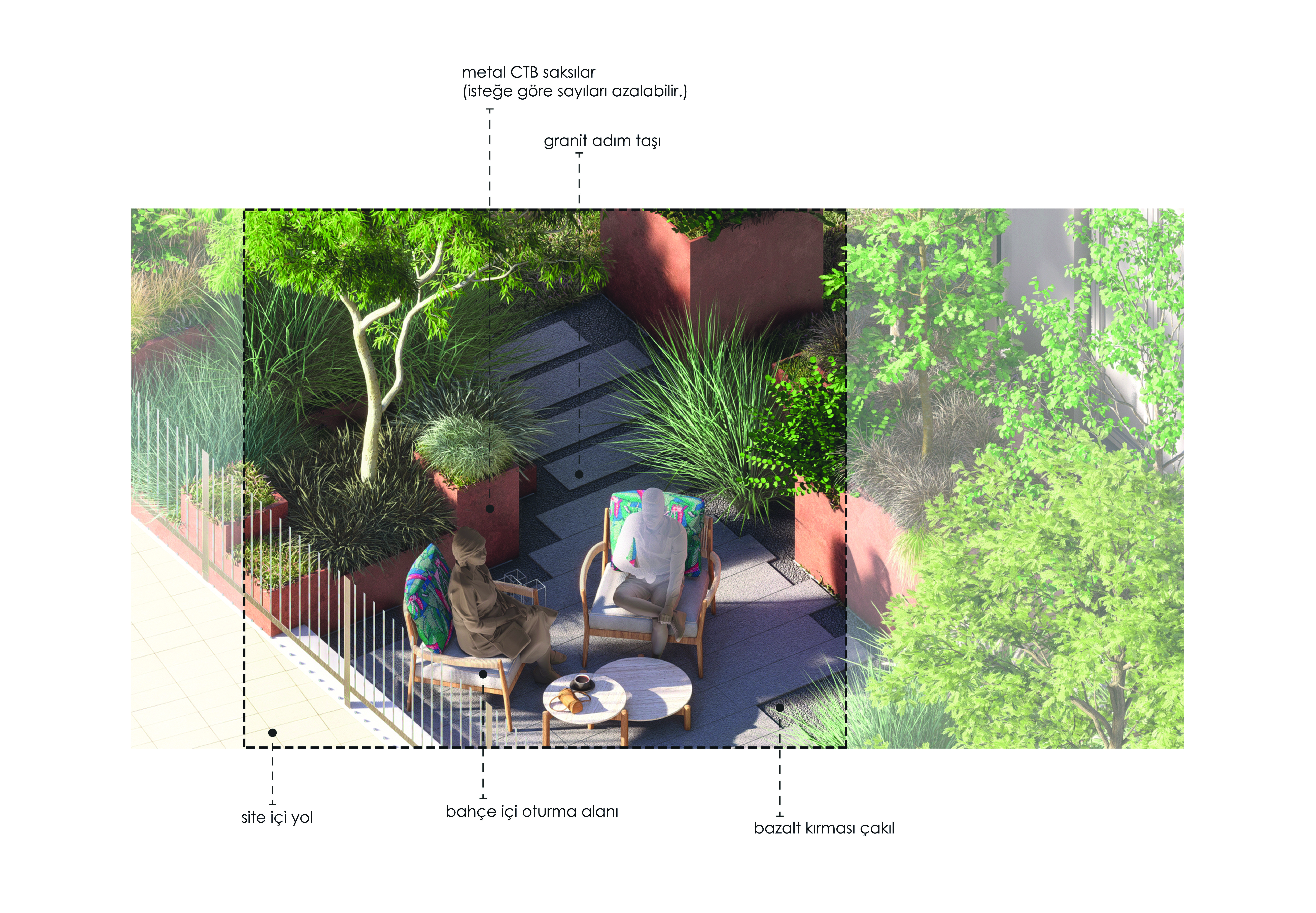 Approach to design in the project; It was developed to create a space mesh that melts into each other by placing the area on a coordinate system and repeating similar units and textures. The social facility area designed in the central courtyard is connected to each other at two different elevations and creates different resting and meeting spaces with the proposed green area, eaves and traces created on the hard ground.