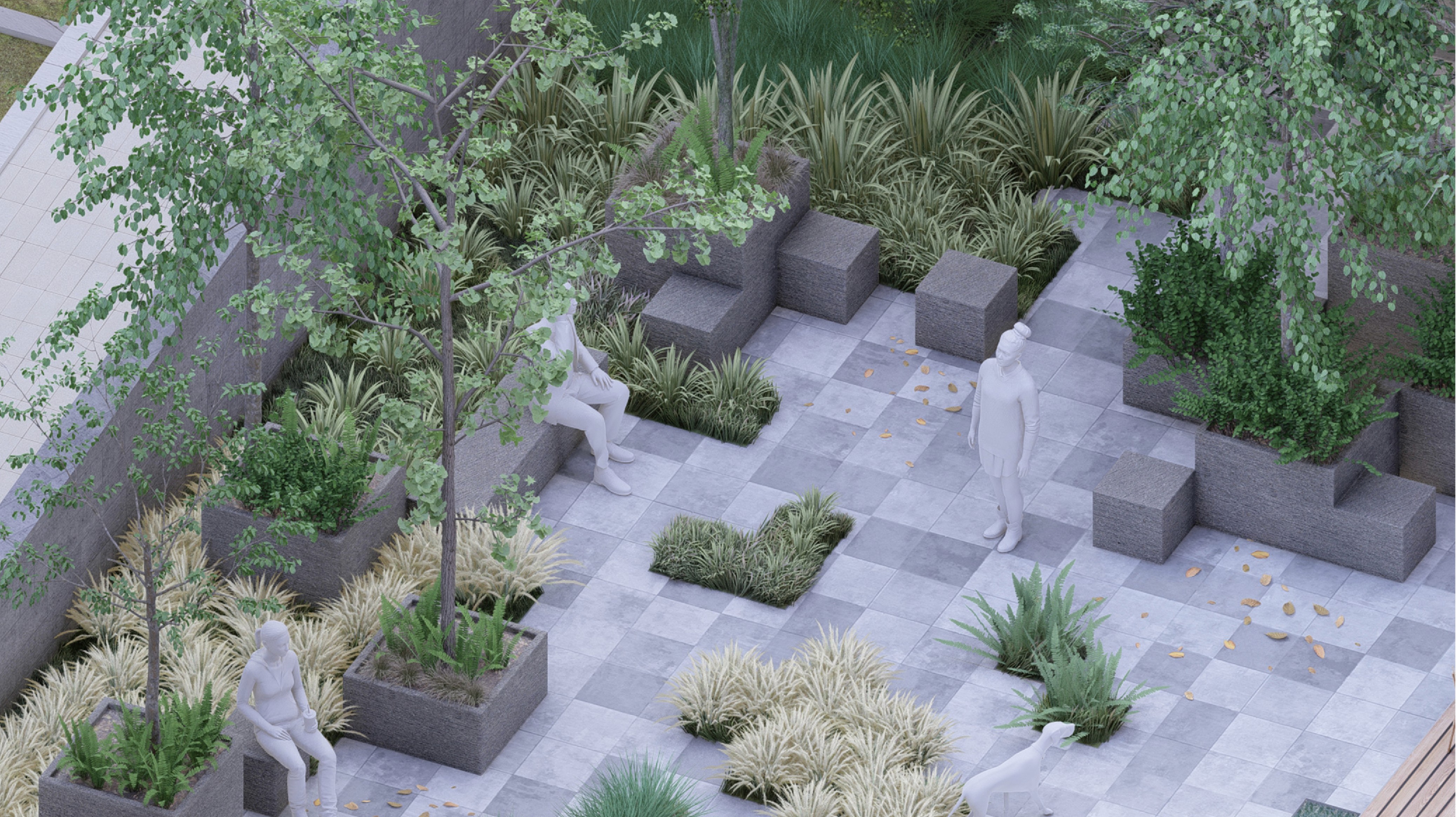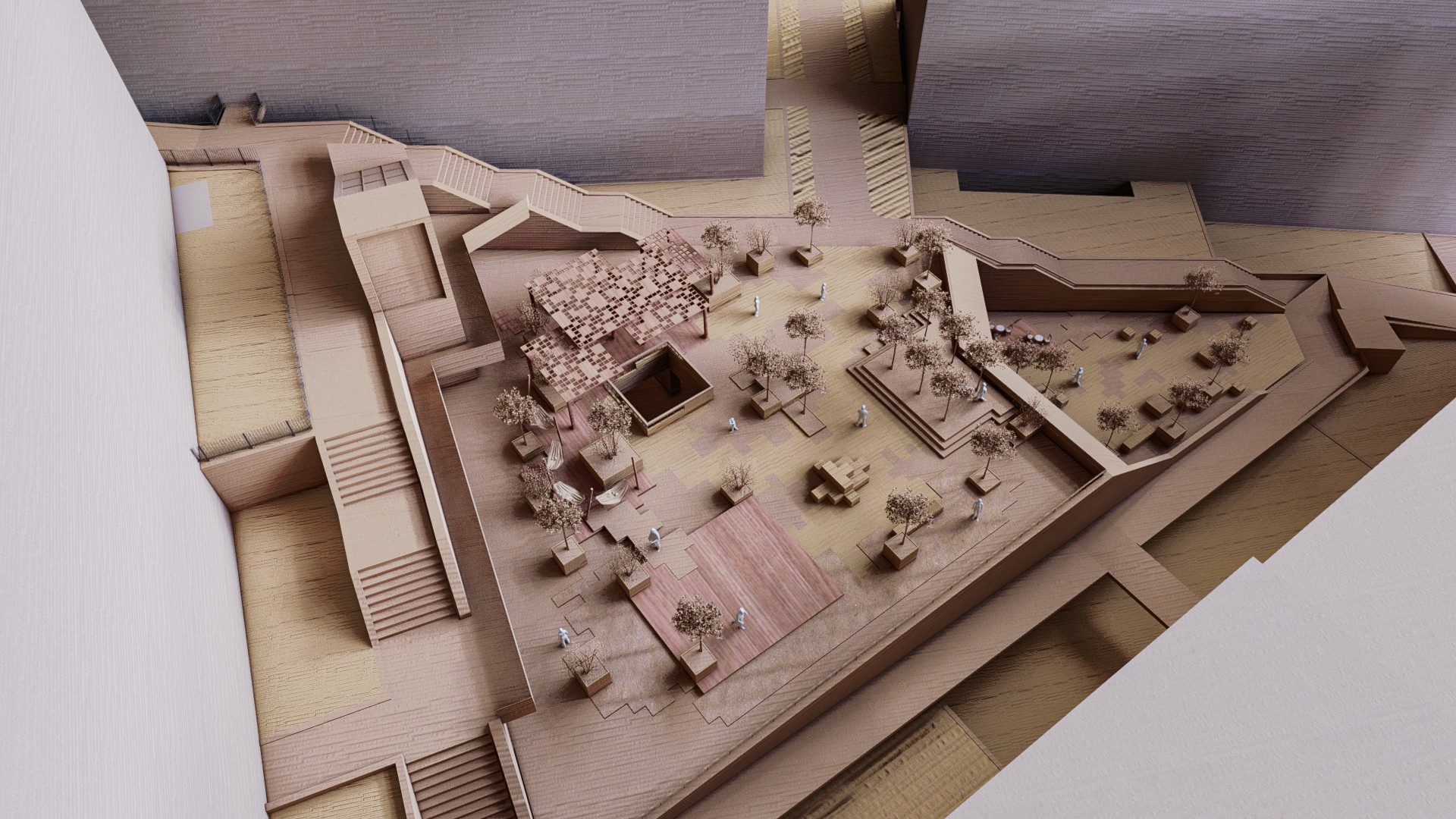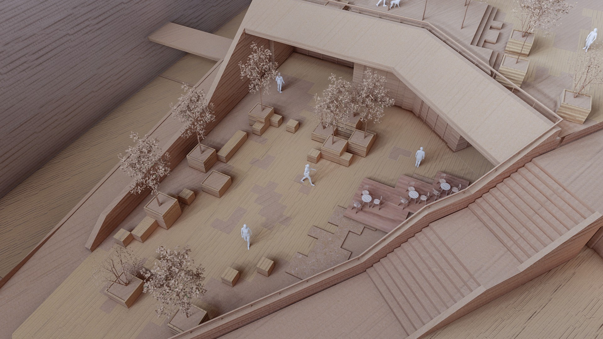 Approach to design in the project; It was developed to create a space mesh that melts into each other by placing the area on a coordinate system and repeating similar units and textures. The social facility area designed in the central courtyard is connected to each other at two different elevations and creates different resting and meeting spaces with the proposed green area, eaves and traces created on the hard ground.